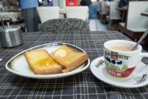 アイスラテとクロワッサン。周りのお客さんだいたいお金持ちの若い夫婦ばっかりだった。
